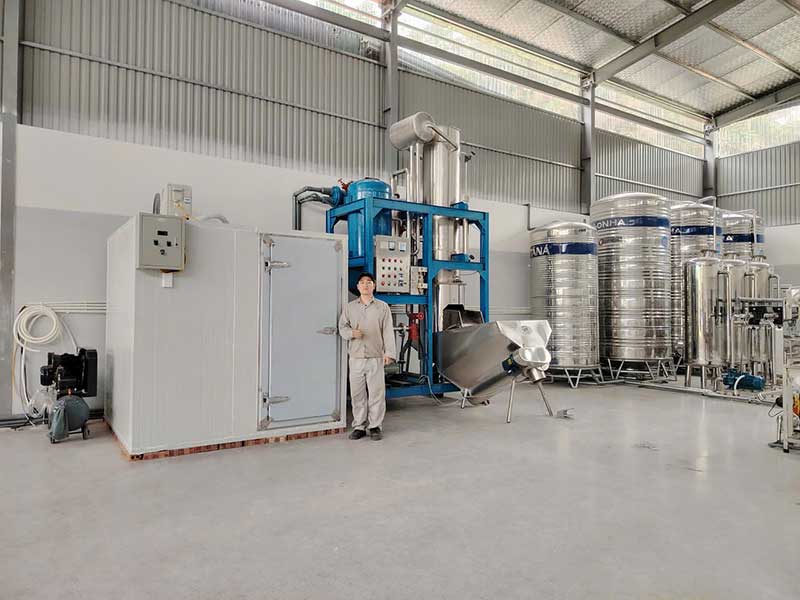 Bên cạnh hệ thống lọc RO, dự án còn tích hợp dây chuyền sản xuất nước uống và đá sạch.