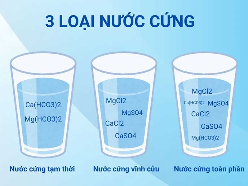 Nước cứng là loại nước có chứa hàm lượng cao ion canxi (Ca²⁺) và magie (Mg²⁺). Tùy thuộc vào nồng độ các ion này, nước có thể được phân thành: