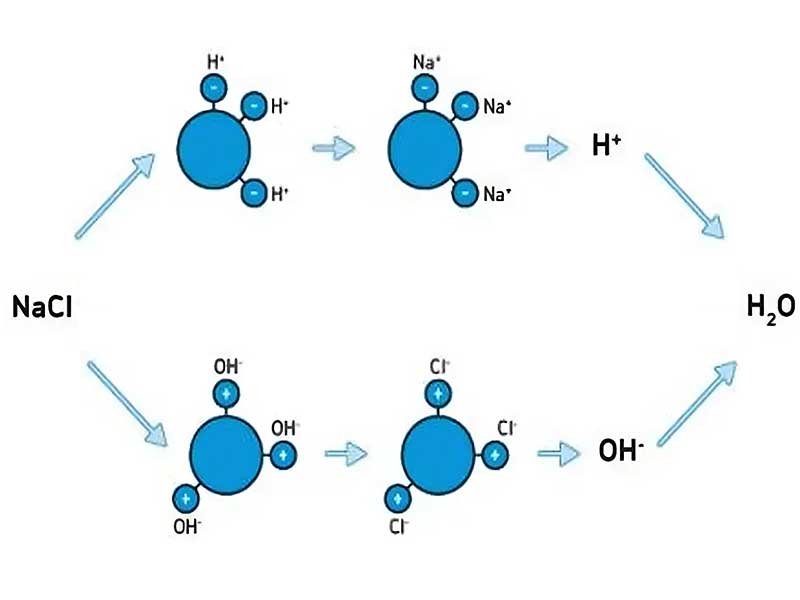 Đây là công nghệ phổ biến nhất hiện nay để làm mềm nước cứng. Hạt nhựa cation chứa Na⁺ sẽ trao đổi với Ca²⁺ và Mg²⁺ trong nước, biến chúng thành Na⁺ hòa tan, không gây cặn.