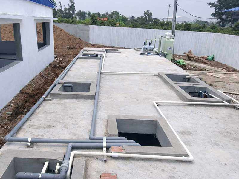 Bao gồm xây dựng các hạng mục bể (điều hòa, thiếu khí, hiếu khí, lắng, khử trùng…), lắp đặt đường ống, bơm, tủ điện, và các thiết bị cơ khí.