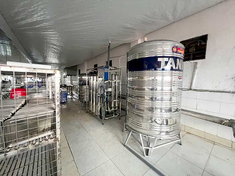Nguồn nước đầu vào tại khu vực thi công là nước máy thành phố, có ưu điểm là độ trong cao, hàm lượng cặn thấp, tuy nhiên vẫn tồn tại các ion kim loại, clo dư và tạp chất hòa tan (TDS) vượt ngưỡng cho phép đối với nước cấp cho nồi hơi hoặc nước uống trực tiếp. Do đó, công nghệ RO kết hợp các cấp lọc cơ học và hóa học được lựa chọn để xử lý triệt để, giúp nước đầu ra đạt độ tinh khiết cao, an toàn cho cả thiết bị và người sử dụng.