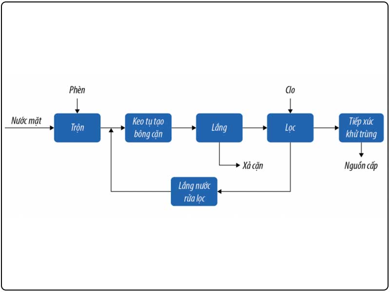 Dựa trên keo tụ, lắng, lọc và khử trùng. Phù hợp cho nhà máy cấp nước đô thị lớn. Ưu điểm: chi phí đầu tư vừa phải. Hạn chế: khó xử lý nguồn nước có ô nhiễm phức tạp.