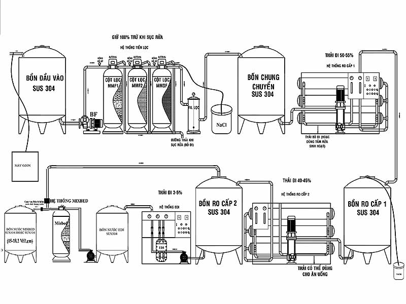 Sơ đồ nguyên lý của hệ thống RO EDI Mixbed
