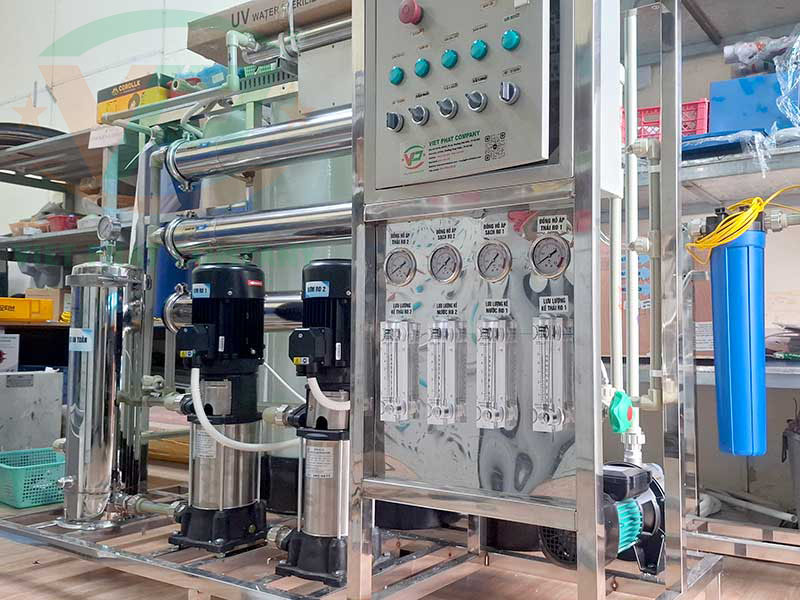 Trọng tâm của toàn bộ dây chuyền là cụm RO 2 cấp. RO cấp một giúp loại bỏ phần lớn muối hòa tan, ion kim loại và các tạp chất kích thước siêu nhỏ. Nước sau đó được tiếp tục xử lý qua RO cấp hai để nâng cao độ tinh khiết và ổn định chất lượng nước đầu ra.