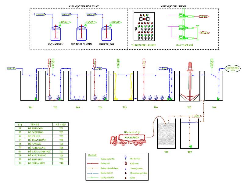 Sơ đồ công nghệ dự án xử lý nước thải công nghiệp 320m3/24h tại Yên Bái