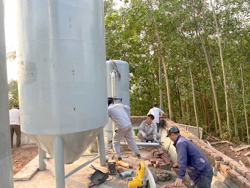 Quá trình lắp đặt hệ thống lọc nước sinh hoạt 130m3/24h tại Hòa Bình được thực hiện đúng kỹ thuật, đáp ứng yêu cầu xử lý nước giếng khoan phục vụ sinh hoạt của công trình.