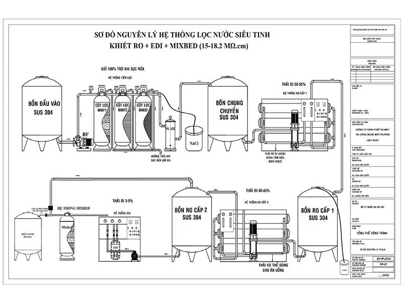 Sơ đồ nguyên lý hệ thống lọc nước siêu tinh khiết RO 2 cấp - EDI - Mixbed