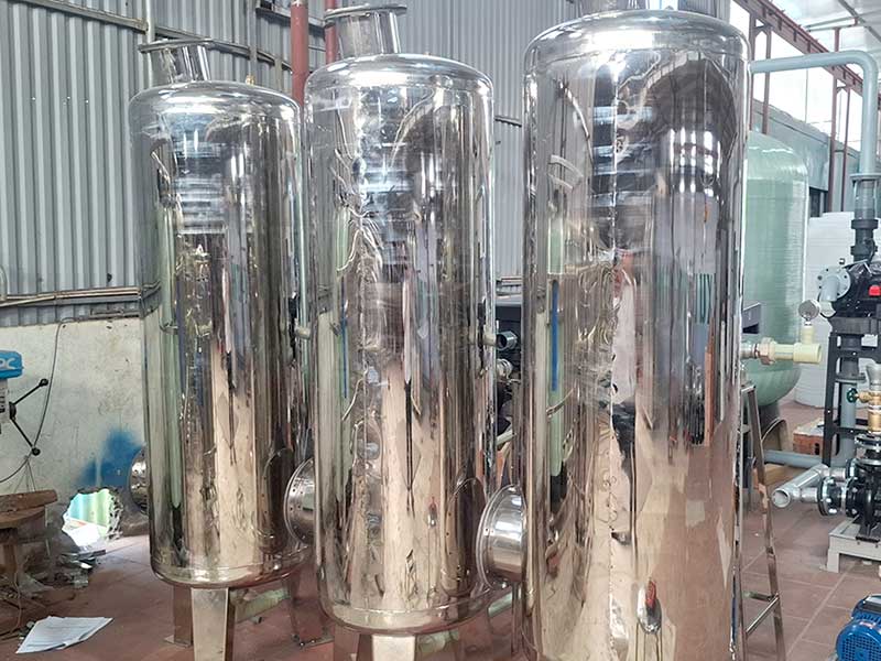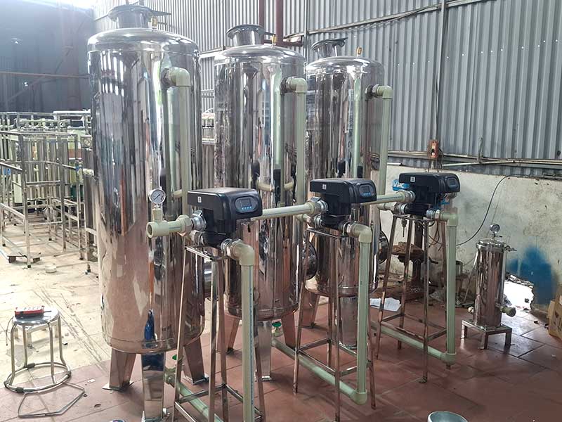 Cụm khử tạp chất và kim loại nặng là giai đoạn đầu trong quy trình sản xuất hệ thống lọc nước RO công nghiệp 2000L/h cho dự án tại Quảng Ninh.