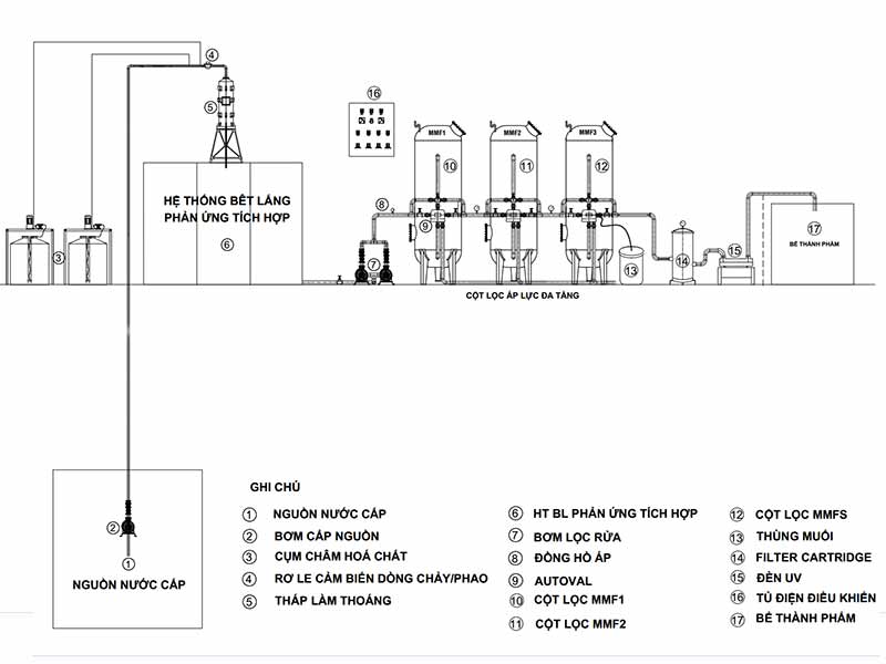 Sơ đồ, công nghệ xử lý nước mặt cấp nước sinh hoạt